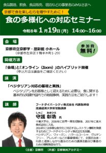 この度、2月13日(金曜日)に、府内の食品関連事業者等から、食の安心・安全に関する取組を紹介いただき、消費者の皆さまと京都の「食」について意見交換を行う「きょうと食の安心・安全フォーラム」を開催します。