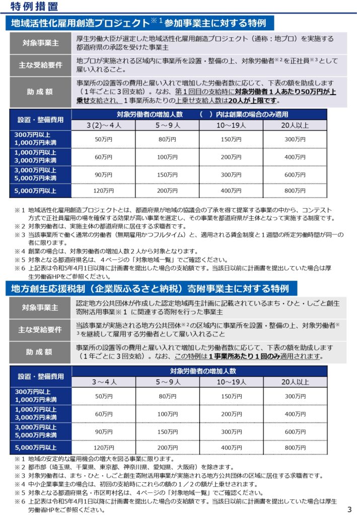 地域活性化雇用創造プロジェクト(※7)参加事業主に対する特例